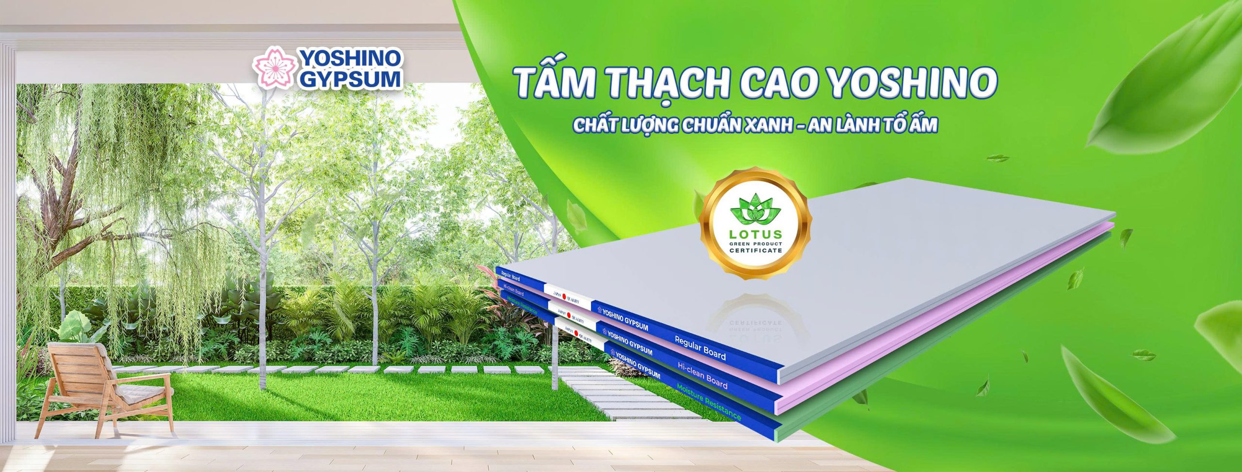 Bộ đôi tấm thạch cao tiêu chuẩn và tấm thạch cao chống ẩm Yoshino đã chinh phục Chứng nhận Sản phẩm Xanh LOTUS do Hội đồng Công trình Xanh Việt Nam (VGBC) cấp.